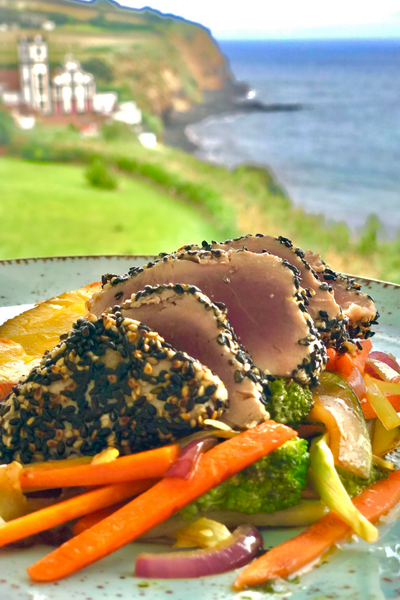 At dinner, enjoy an intimate and relaxing atmosphere and savor special dishes like our Seared Tuna with sesame seeds, served with vegetables and sweet potatoes.