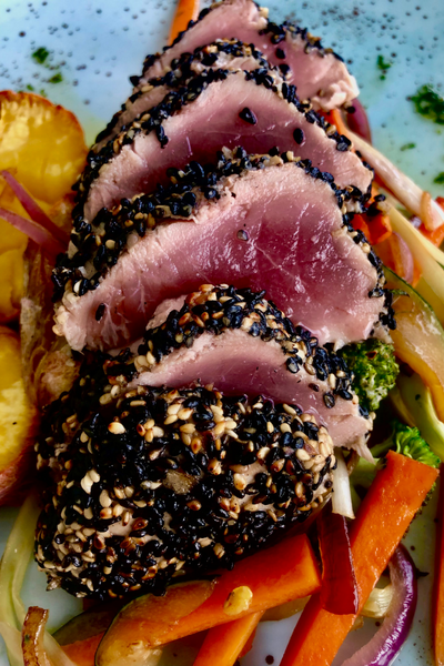 A la hora de la cena, disfrute de un ambiente íntimo y relajante, y saboree platos especiales, como nuestro Atún Braseado con semillas de sésamo, acompañado de verduras y batata.